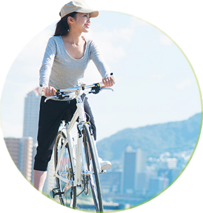 サイクリングでは車でのドライブやバイクと違い、エンジンの力を借りず、自分の力だけで、自分のペースで、のんびりと走れるところが魅力です。
