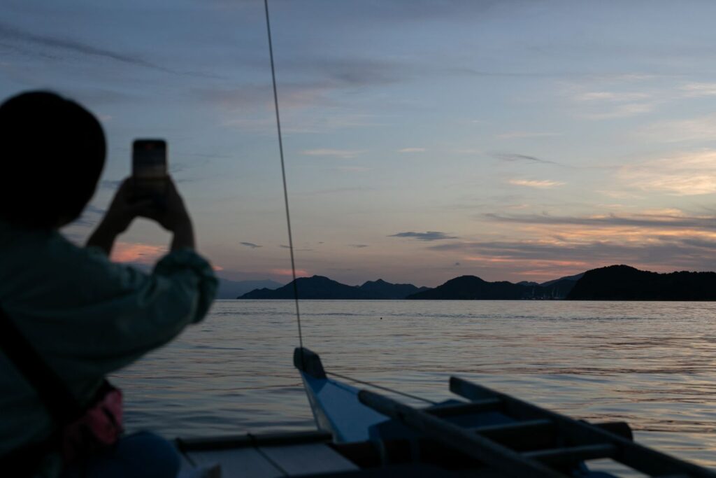 もうすぐサンセットタイム。夕陽が見えるポイントにつれてきてもらいました。クルージングはオーダーメイド。近海周辺を熟知したキャプテンがまだ知らない場所へ案内してくれます。
