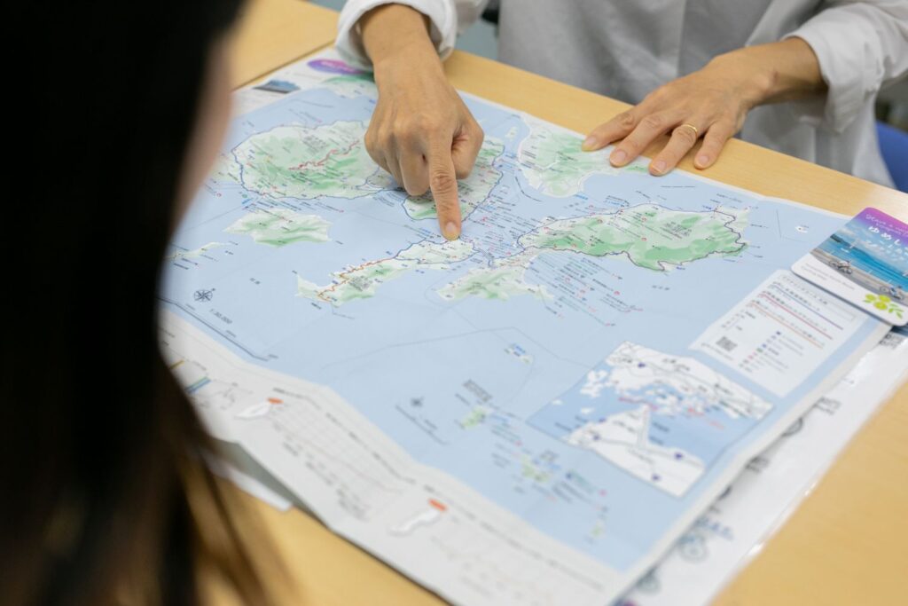 現在地の把握や情報収集にはスマホが便利ですが、出発前に地図を開いてそれぞれのスポットの位置や距離感を把握しておくと安心です。