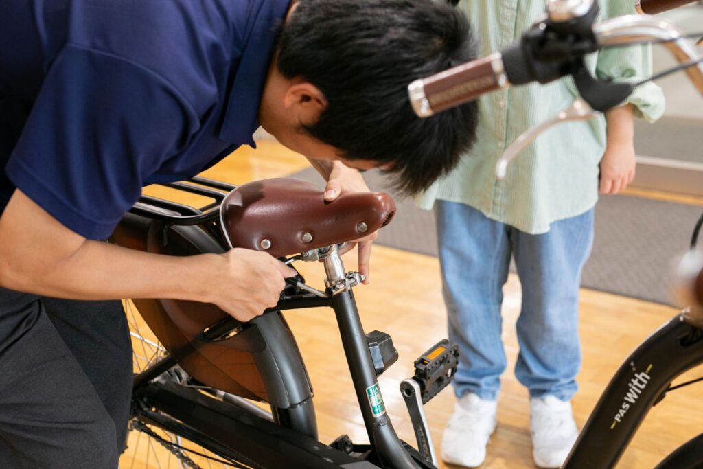 快適なサイクリングにはサドルの高さも重要! 知識のあるスタッフがちょうどよい高さに調節してくれます。