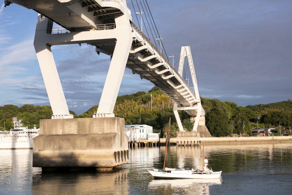 宿のチェックインを済ませたら、また自転車に乗って弓削大橋方面へ。橋を渡ってすぐにある『島旅ヨット』のサンセットクルーズを体験します。完全予約制のクルージングツアーを企画・運営する『島旅ヨット』の拠点は弓削大橋の佐島サイドのほぼ真下にあります。