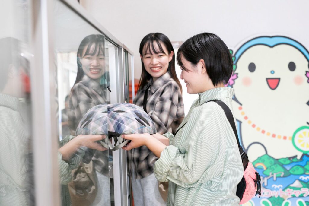 ヘルメットは自転車とセットで貸出(無料)。令和8年3月31日まで「かみじまサイクルフリー」を実施中!上島町各島への船の自転車料金が無料になります。