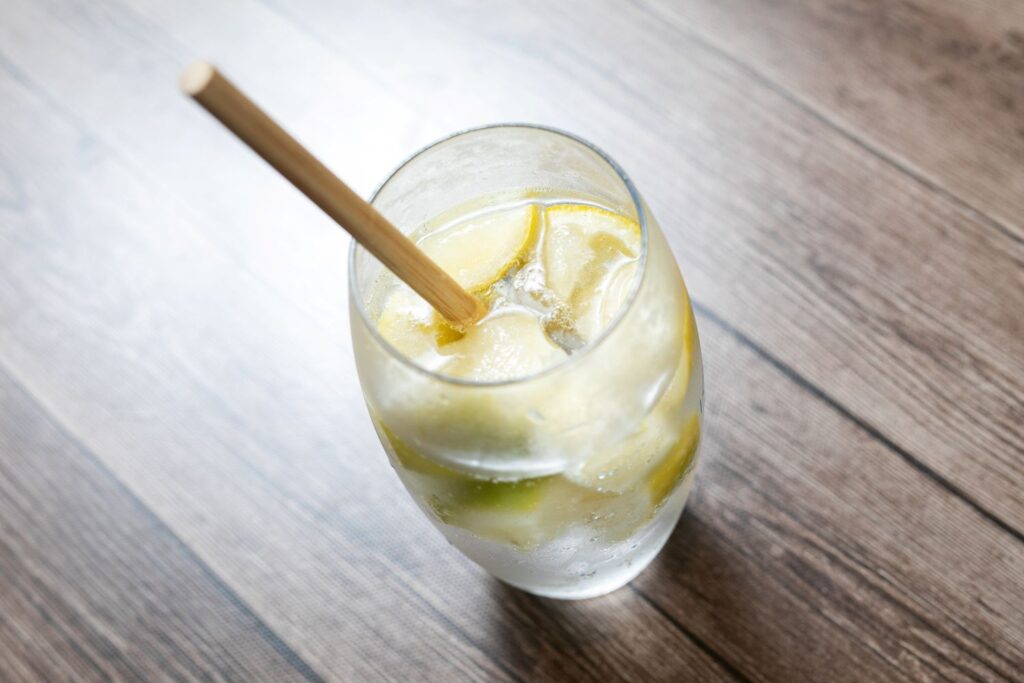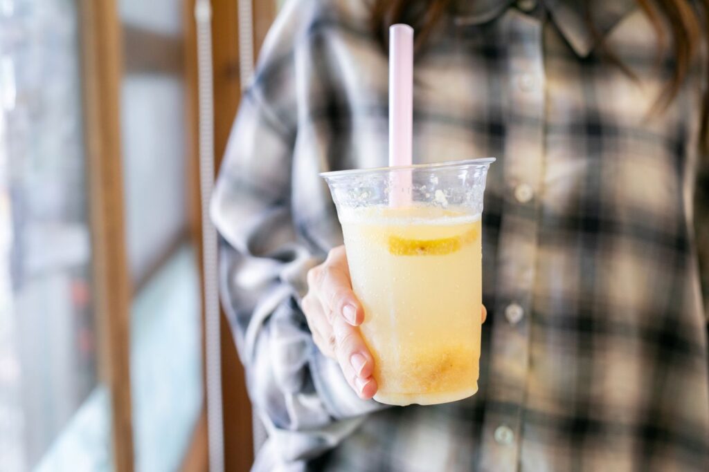 ゆめしま産レモンをシトロナードと呼ばれるペースト状に加工し、炭酸水で割ったシトロナードスカッシュ(450円)。Hakanda Cafeのリピーターでもあるフランス料理のシェフが監修したそう。
