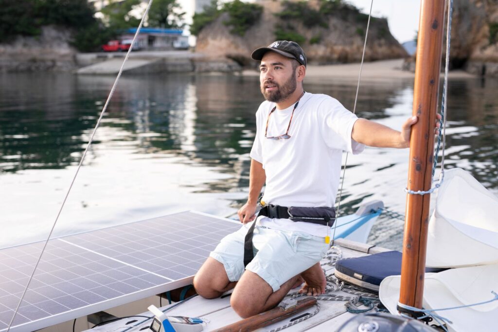 動力は帆で受ける風と電動エンジンを使用。エンジン音や排気ガスなしでクルージングを行います。海と自然を愛し、地元を熟知しているキャプテンだからこそできるクルージングです。