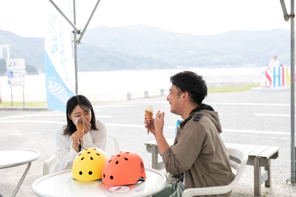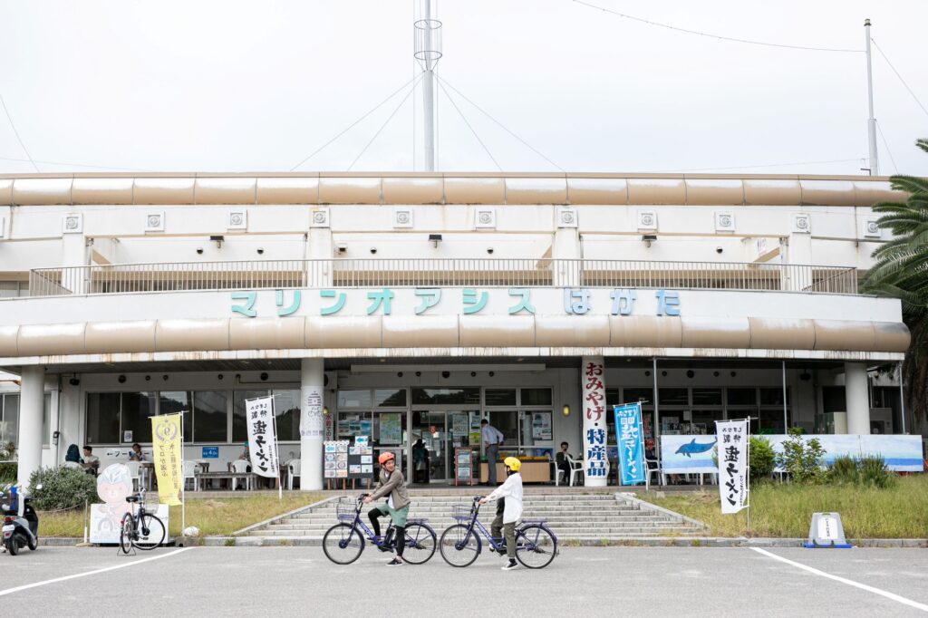 「ute」から自転車で約10km、次の目的地は「道の駅 伯方S・Cパーク」。こちらは特産品を販売するショップやレストランが入る施設「マリンオアシスはかた」があり、サイクリストにも人気のスポットです。