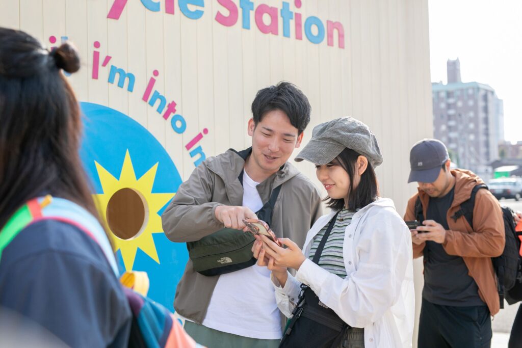 受付の順番を待つあいだに「しまなみ海道サイクリングアプリ」をダウンロード。しまなみ海道を楽しく安全にサイクリングするための便利機能が満載です。レンタサイクルの貸出・返却ターミナルを設定して旅程を作成できたり、走行ルートや距離・時間など楽しい思い出を記録することができます。