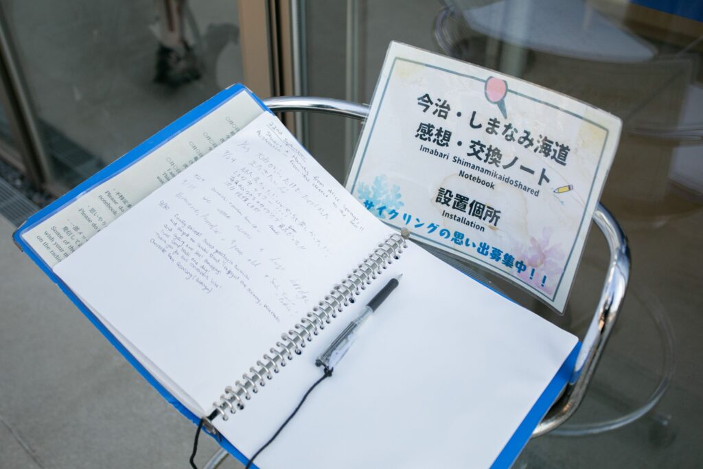 しまなみ海道の情報や感想を書き込むノートを発見!「いつもSNSで情報を探すからなんだか新鮮だね」
