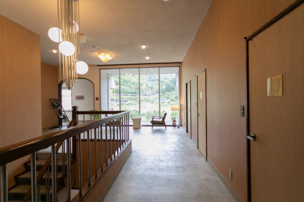 絶景を楽しんだあとは宿泊施設「HANAGURI」へ。長年「しまなみ旅館」として親しまれてきた建物をリノベーションし、2023年3月にオープン。無人のため、非対面でセルフチェックイン。エントランス、部屋も電子ロックで制御されているので鍵も必要なしです。予約時にオンラインで事前決済。自分たちの旅がシンプルにおさまる、スマートな宿泊施設です。