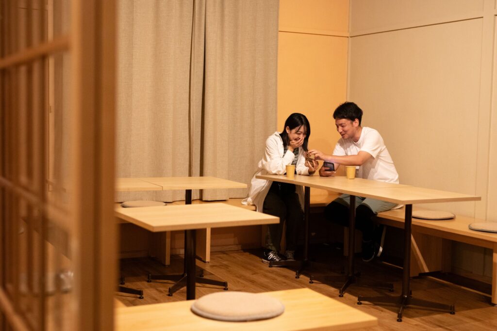 持ち込んだお食事はもちろん、旅人たちの交流の場として自由に利用できるコミュニティルーム。