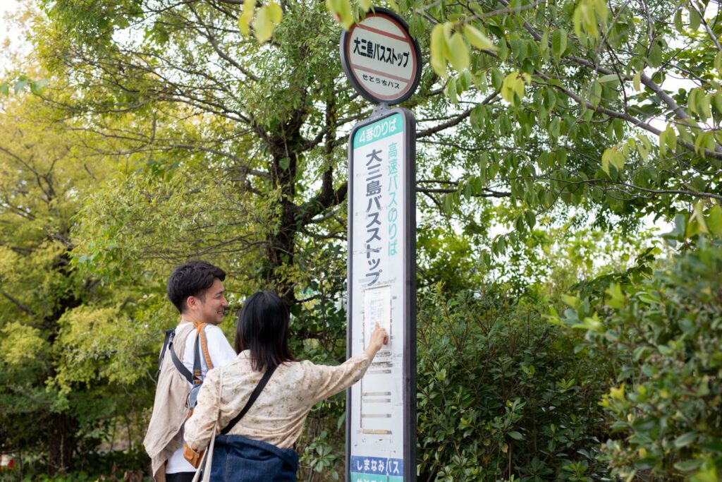 「道の駅 多々羅しまなみ公園」から歩いてすぐの場所にあるバスターミナル「大三島バスストップ」へ移動します。ここは大三島インターチェンジの近くにある高速バスのバス停です。