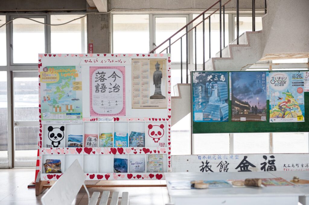 しまなみ海道ができるまでは島外へ出るための主要な拠点でしたが、現在は『いまばり・いのくち海の駅』の休憩所になっています。イベントのチラシなどが置かれていて、観光情報の発信などを行う場所にもなっています。