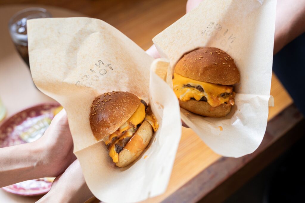 チーズバーガー(ダブル1,900円)を半分にカット。