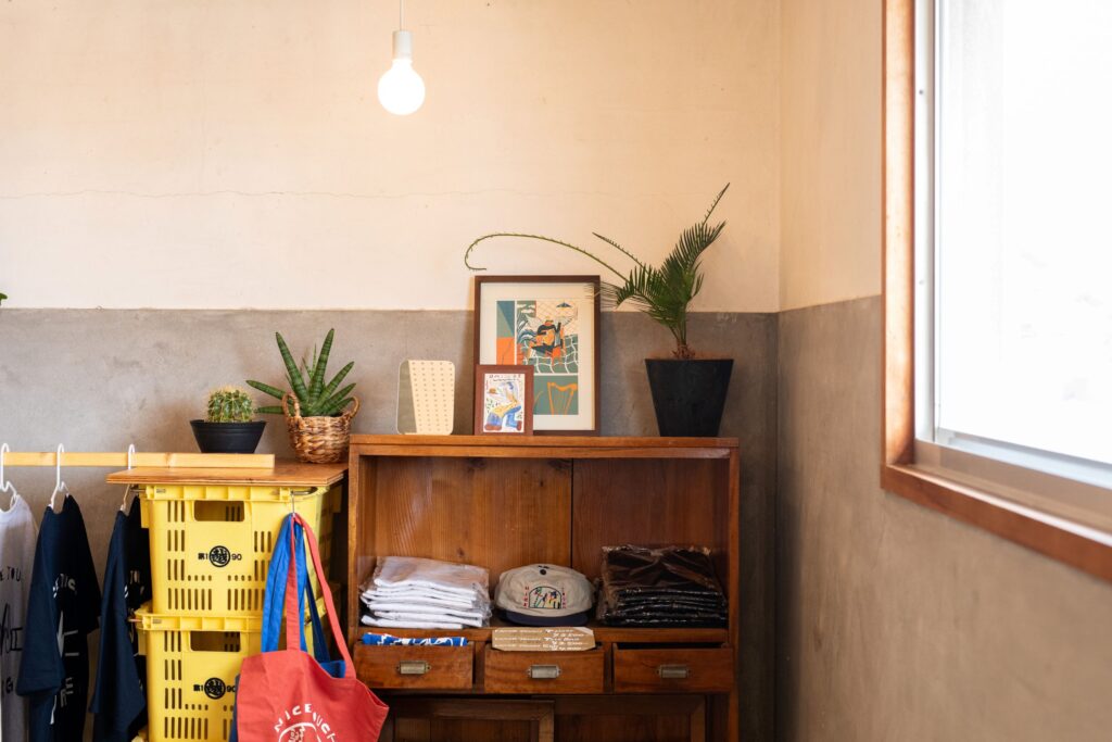 Tシャツやキャップなどオリジナルグッズも販売。旅の思い出やお土産にぴったり。